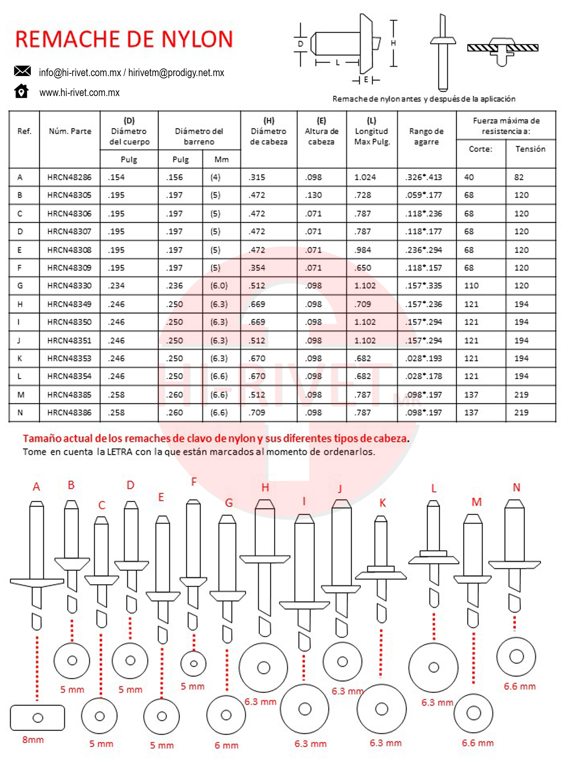 Descripción: Estos remaches son utilizados principalmente para fijar materiales suaves de una manera rígida y uniforme sin dañar al ensamble. Son empleados principalmente para unir plásticos automotrices con metal como: tolvas, salpicaderas de fibra de vidrio, parte inferior e interior de las salpicaderas, defensas, topes molduras, rejillas de ventilación, paneles interiores por mencionar algunos de sus múltiples y variadas aplicaciones.