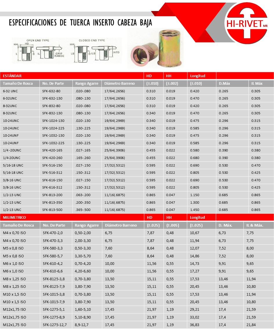 Tuercas Inserto Especiales: Hexagonal,