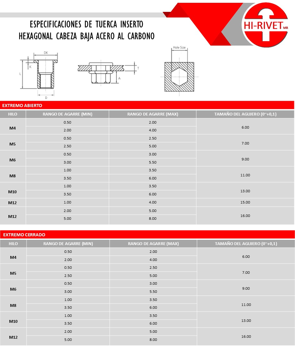 TUERCA INSERTO ESPECIAL: HEXAGONAL CABEZA BAJA