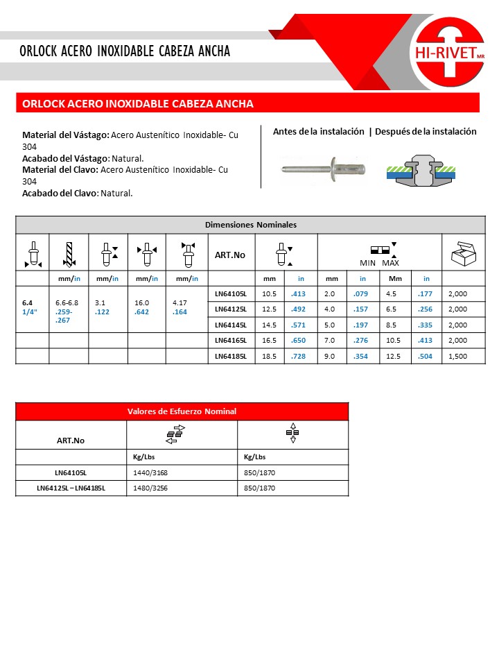 ORLOCK ACERO INOXIDABLE CABEZA ANCHA